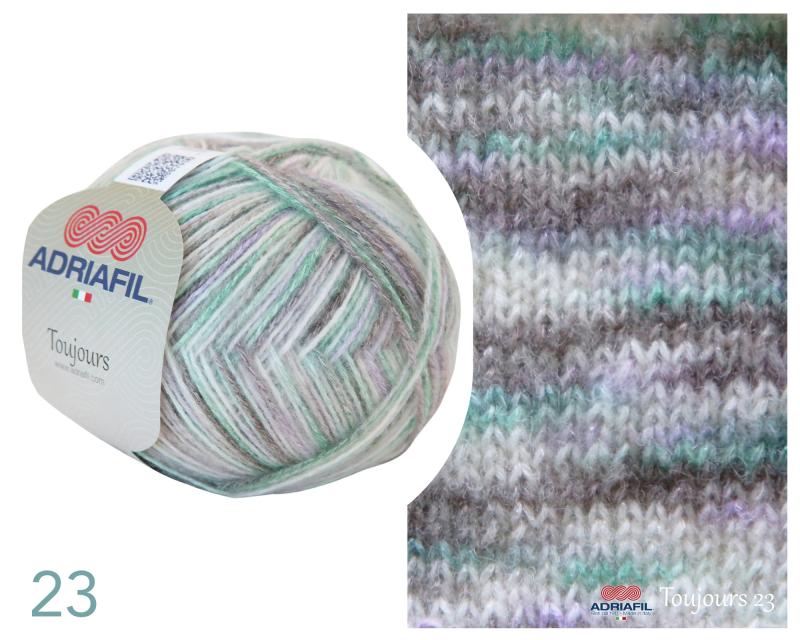 Das Toujours-Garn hat eine bündige Struktur, in der die Mischung aus Baby-Alpaka und feiner Wolle in einer Baumwoll- und Viskosekette „geblasen“ ist. Diese Technik erzeugt ein weiches und luftiges Garn, das einen größeren Austausch von Körperwärme fördert. Das Ergebnis ist ein perfekter Komfort für alle Jahreszeiten, der sich in seiner Vielseitigkeit unter unterschiedlichen klimatischen Bedingungen widerspiegelt.